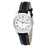 Timex Men's T2N227 Analog Silver-Tone Case Black Leather Strap Dress Watch (Watch)