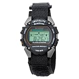 Function and comfort unite in this sporty, easy-to-read and easy-to-use digital watch from Armitron. A comfortable black nylon band joins to an athletic resin case with a charcoal, screw-down bezel that clearly identifies buttons for date, alarm, mode and light functions. A six-digit blue LCD display shows the time and illuminates at the touch of a button. Water resistant to 165 feet, this athletic watch will help you stay on the go. Read more