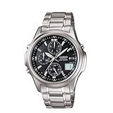 The LINEAGE chronograph atomic watch is both fashionable and user friendly. By positioning the LCD screen at 4 o'clock, the LCD not only reads easily, it also functions as a reference sub-display for 1/100th second stopwatch. To further enhance visibility, the watch employs a Full Auto LED Light with Afterglow which automatically activates light when the watch is tilted in the dark.With a classic chronograph design, the Casio Men's Edifice Sporty Solar Atomic Watch #LIW500DJ-1A is both fashionable and user friendly. In addition to a handsome silver stainless steel band with a fold-over-clasp-with-double-push-button-safety clasp, this Casio has attractive sub dials at the six, nine, and 12 o'clock positions. There's also a small digital display at the four o'clock position for keeping tabs on the date. By positioning the LCD screen at four o'clock, the LCD not only reads easily, it also functions as a reference sub-display for its 1/100th second stopwatch. To further enhance visibility, the watch employs an automatic LED light with Afterglow that automatically activates when the watch is tilted in the dark. Not only is this watch attractive and user friendly, it will never need resetting or batteries--this atomic watch can reset itself automatically several times a day, and runs on artificial or natural light. Water resistant to 165 feet (50 meters), this Casio keeps time with reliable Japanese quartz movement. Read more