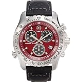 From the mountains to the sea, Timex Expedition has no boundaries. Worn by extreme outdoor adventurists like Conrad Anker, Timex Expedition belongs to the great outdoors. One-Year WarrantyAlarm Features. 4 Year Battery Life.From the mountains to the sea, this Timex has no boundaries. Worn by extreme adventurists such as Conrad Anker, the Timex men's Expedition with Chronograph watch belongs to the great outdoors. The case is chrome, and the dramatic red face is prominently embellished with contrasting Arabic numerals. The watch comes equipped with a durable buckle clasp and black leather band. Engraved Arabic numerals adorn the silver bezel. For additional time-telling convenience, the watch has a date calendar which rests at the four o'clock position, and three chronograph sub-dials reliably measure seconds, minutes, and hours. Other components include the Indiglo night light and luminescent hands. Powered by analog-quartz movement, this classy timepiece is a must-have for all fashion-savvy wilderness enthusiasts. This watch, which is also water resistant up to 330 feet,, is backed by a 1-year limited manufacturer's warranty. Read more