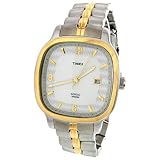 TIMEX Men's Square Faced Two-Tone Dress Watch with Indiglo Night Light. Model: T27361. Add classic style to your everyday couture with the Timex T27361 Two-tone men's watch--a great match for business or casual wear. It has a large, rounded square watch case and interior dial with small minute indexes markings. It has a white dial background with numeral and gold stick markers, luminous baton hands with seconds hand, and date function at 3 o'clock. It's completed by Two-tone stainless steel link bracelet with locking fold-over clasp. Other features include Indiglo Night Light and water resistance to 50 meters. For a long life and years of quality performance, this elegant timepiece is powered by precise analog-quartz movement and and is backed by a 1-year manufacturer's warranty. Read more