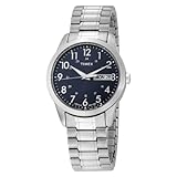 Timex Mens Silver Tone Expansion Blue - Timex T2M933.Showcasing a rich blue face offset by a silver-tone hour markers, the Timex Men's Silver-Tone Analog Expansion Band Dress Stainless Steel Bracelet Watch nicely complements sophisticated business wear. Constructed with a brass case, the watch includes a stationary brass bezel and a comfortable stainless steel expansion wristband. A strong mineral window shields the blue dial, which features large silver-tone Arabic numeral hour markers encircling discreet Arabic numeral indexes that display the 24-hour clock cycle. The face also includes slim silver minute indexes and a day-and-date calendar at three o'clock. Powered by quartz movement, this handsome timepiece is water resistant to 99 feet (30 M). Read more